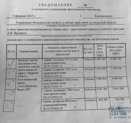 Нежилое помещение площадью 15,9 кв.м. Местоположение: г. Хабаровск, ул. Фрунзе, д. 56 Б «В», ПК ГК-225, бокс 28. Кадастровый номер 27:23:0030312:489. Регистрационный номер 648/А. Цена 636565 руб. (НДС не облагается). Задаток 159141,25 руб. Шаг аукциона 6365,65 руб. Контактное лицо: ОСП по Центральному району г. Хабаровска, Налимова А.В., тел. 89249265012. Назначение нежилого помещения: помещение.